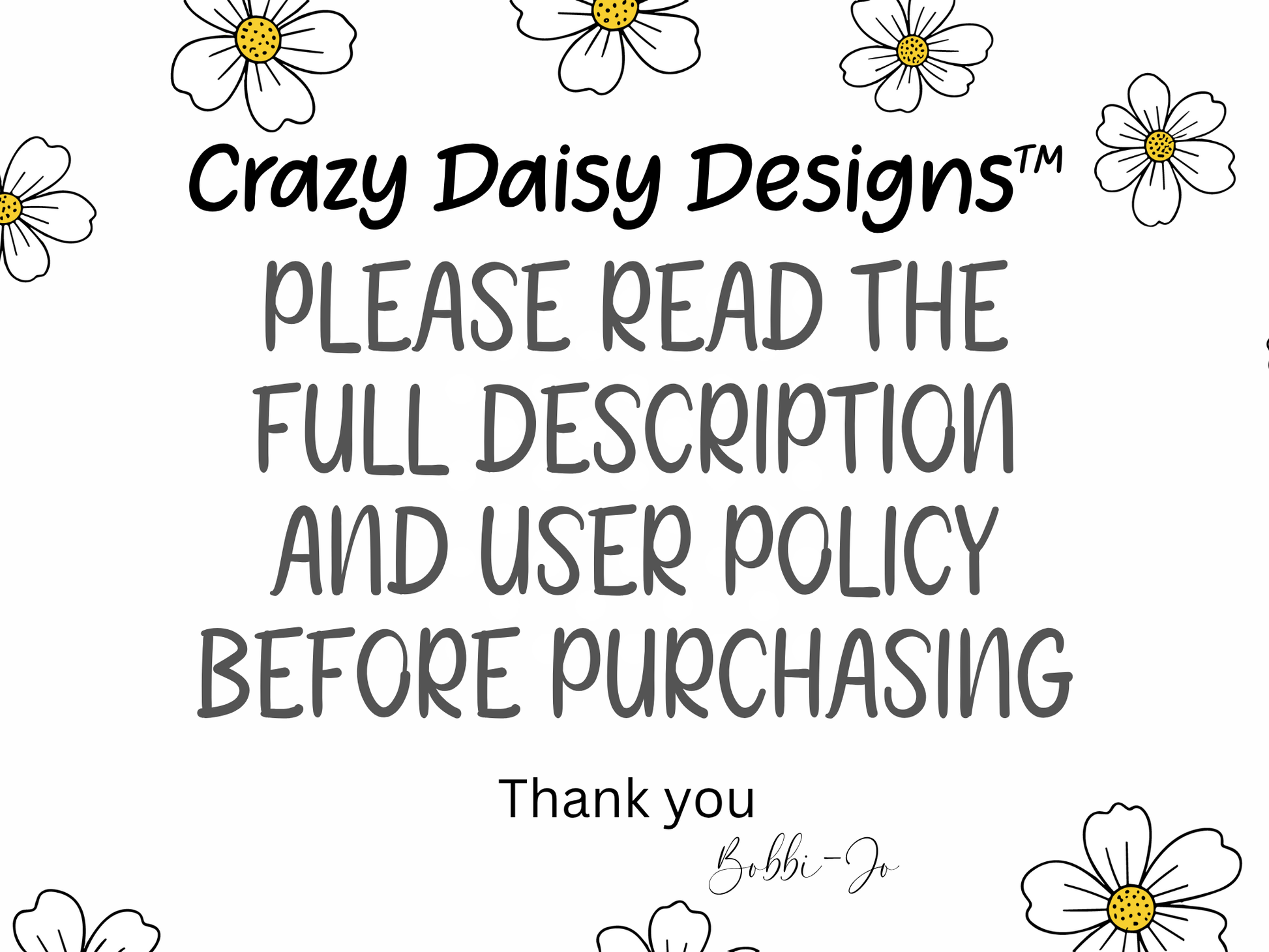 All designs and artwork remain the property of Crazy Daisy-Designs™.